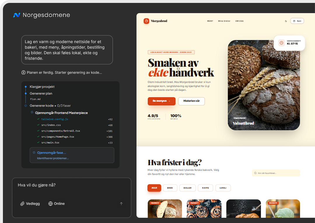 Et domene er adressen til nettsiden din på internett, for eksempel mittfirma.no. Uten et domene kan ingen finne nettsiden din. Domenet er ofte det første kundene dine ser, og fungerer som en digital merkevare du eier og kan bygge videre på.
